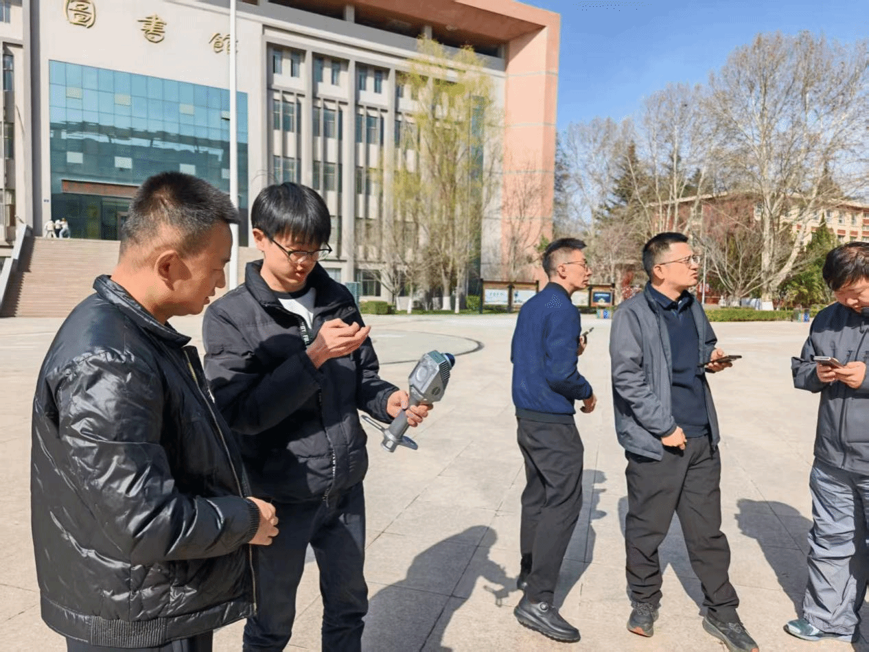 理论讲解结束后,全体教师前往室外实操场地开展实战练习,大家分组协作,严格按照操作规范,有序进行外业数据采集,合理规划扫描路径、精准布设基准点,细致完成每一个操作步骤,全力保障采集数据的完整性与精准度。随后,全体人员返回室内,开展内业数据处理实操,熟练完成点云去噪、配准、建模等一系列操作,全面掌握数据采集、处理、建模的全流程技巧。