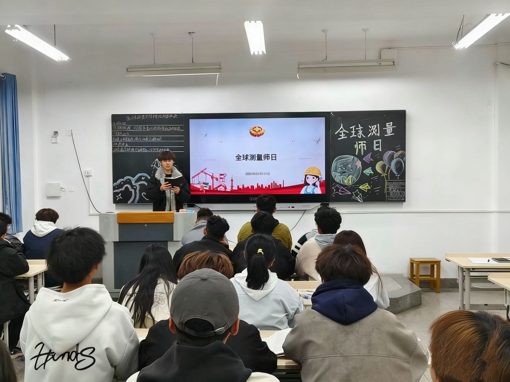 班会期间,学生集体研读全球测量师日FIG 2018年设立该节日的初衷,同学们深刻体悟到——“差之毫厘,谬以千里”绝非空洞的警句,而是测绘人用脚步丈量山河、以数据守护国脉的生命信条。活动中学生结合中交横沥项目泥浆中校准点位、武汉测绘院潘鹏飞十二年千万平方米精准测图等真实案例,真切认识到:实事求是是测绘的魂,更是青年学子须内化于心、外化于行的职业基因。