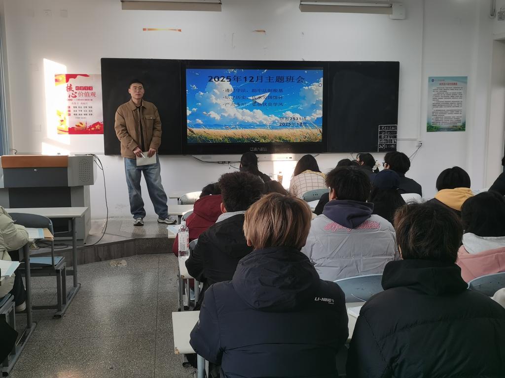 为进一步强化学生纪律意识,传承爱国主义精神,营造诚信考试、勤学笃行的优良学风,12月7日至9日,测绘地理信息学院各班级陆续召开“遵纪守法守初心,爱国明礼正学风”主题班会。班会以理论学习、案例分析、互动讨论等形式,引导学生树立正确价值观,筑牢思想防线,为校园文明建设注入正能量。