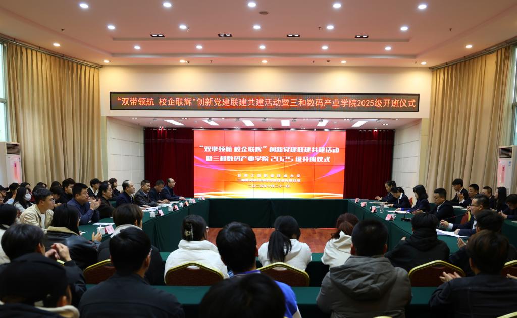 校企携手启新篇,产教融合育人才。10月21日下午,学校与三和数码测绘地理信息技术有限公司在中材大厦13楼会议室联合举办“双带领航 校企联辉”创新党建联建共建活动暨三和数码产业学院2025级开班仪式。学校党委常委、副校长周晓明,三和数码测绘地理信息技术有限公司党总支书记、副总经理靳娟丽,副总经理曹小鸿出席,测绘学院班子成员,学校教务处负责人以及师生代表参加。