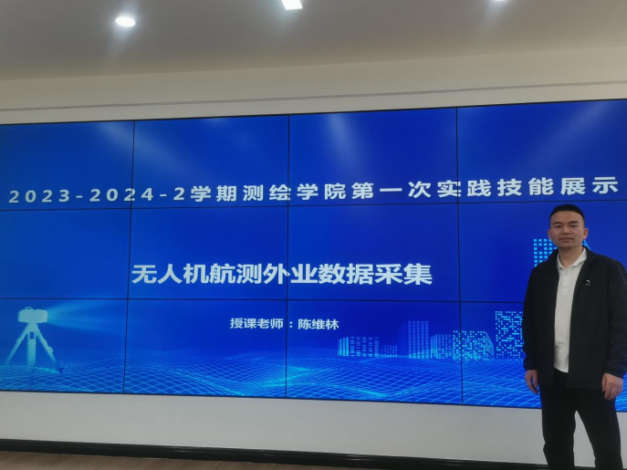 陈维林老师的实践技能展示主要分为三部分。第一部分讲解无人机航测技术的发展及应用,通过与传统测绘技术进行对比,凸显无人机航测技术适应新型测绘的独特优势;第二部分讲解无人机组装及航线规划。