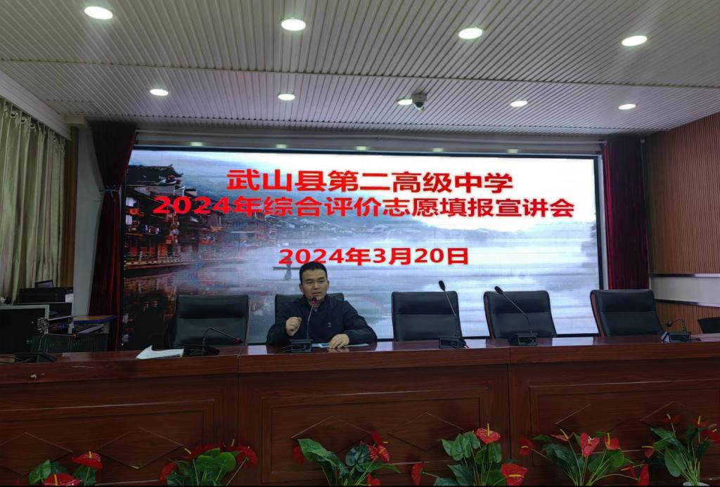 测绘学院陈维林老师在武山二中向同学们介绍综合评价志愿填报注意事项。