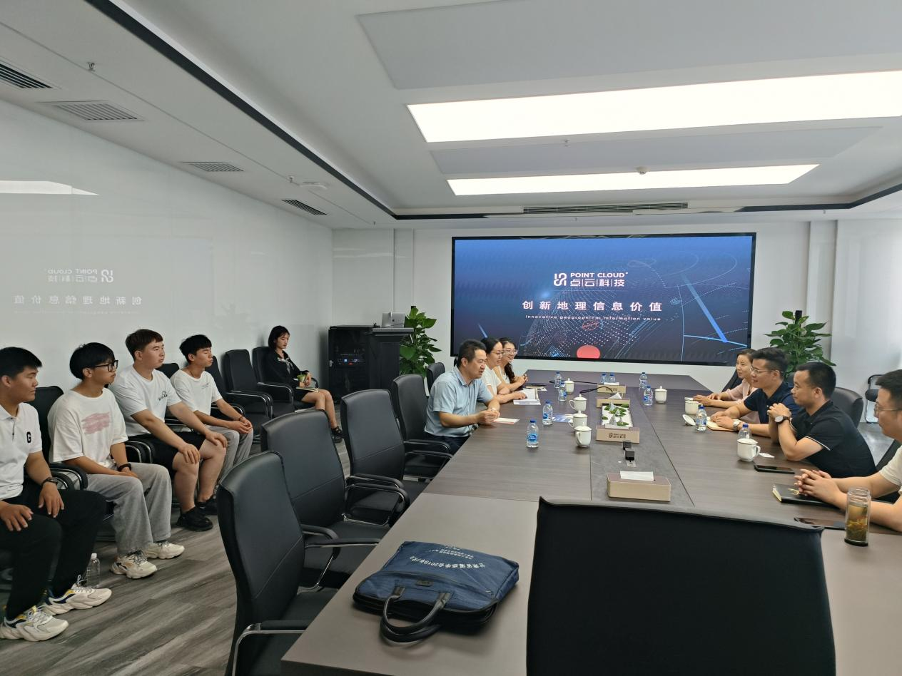 第三站,陕西点云科技有限公司。年轻企业家总经理点云科技马威介绍了公司的发展、企业文化、以满足智慧地球时空信息战略需求为出发点,以创新地理信息价值为目标,提供跨网络、跨行业、跨终端的地理信息解决方案和服务。刘乃君副书记对公司的快速发展表示赞赏,同时希望能与点云科技在校企研发、培养跨行业跨领域复合型技能人才方面开展深入合作,促进毕业生更充分和更高质量就业。我校四名优秀实习生汇报了实习期在点云科技的想学习工作生活情况,感谢企业给予发展自己的平台,增强了就业信心,并对母校的培养表示由衷的感谢,为他们推荐优质企业,帮助他们实现梦想。