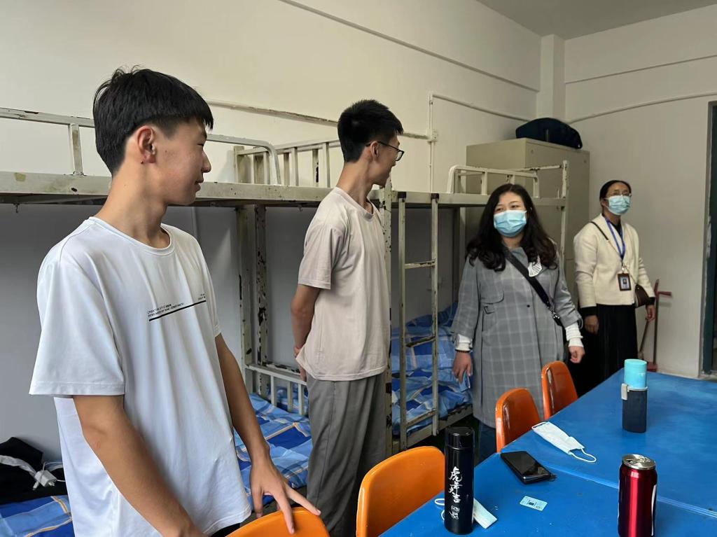 走访老生宿舍期间,各位辅导员老师与同学们亲切交谈,向同学们询问了假期的学习和生活情况,叮嘱学生在疫情防控期间,要严格遵守学校的管理规定,自觉做好每日体温监测,养成良好卫生习惯,尽快从假期的状态中调整过来,根据新学期的规划,以崭新的精神面貌全身心投入到学习当中。