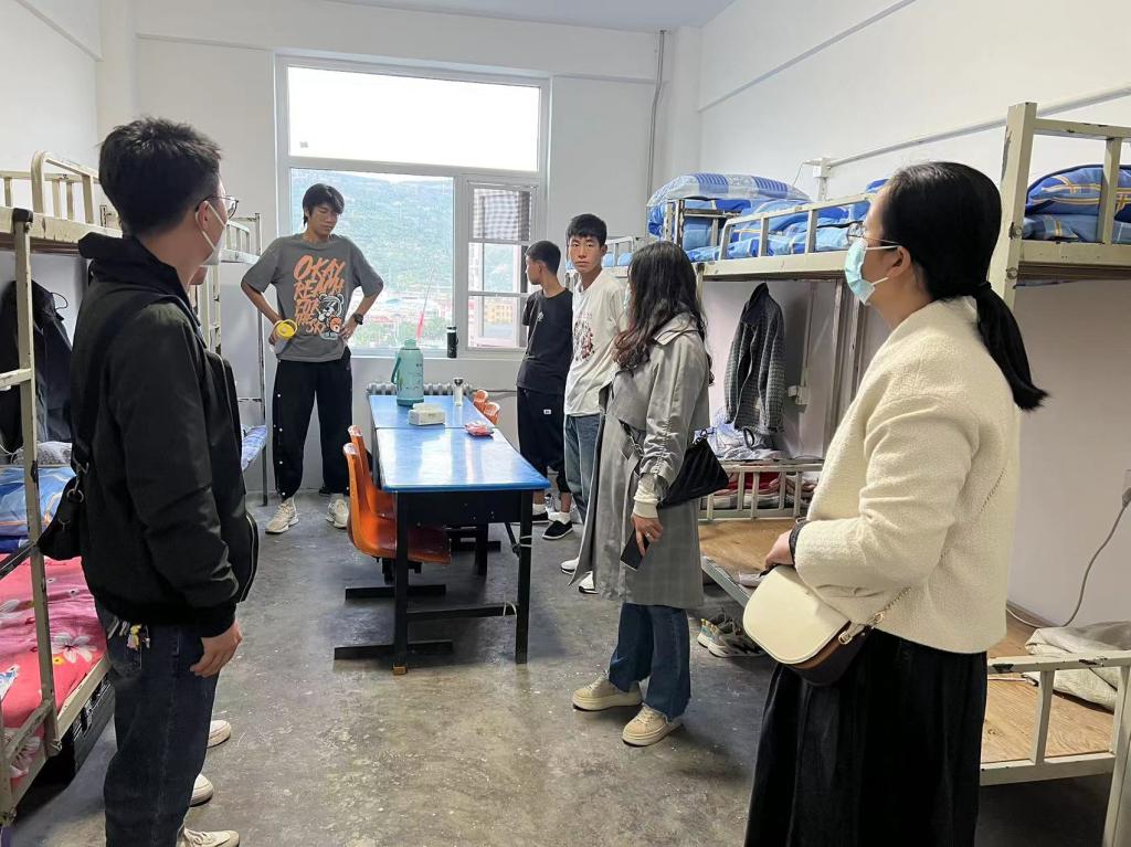 为深入了解新学期开学整体情况,做好学生返校后宿舍教育管理工作,9月27日,测绘学院副院长杨爱琴、测绘学院副书记高霞带领测绘学院全体辅导员走进公寓,看望返校学生。