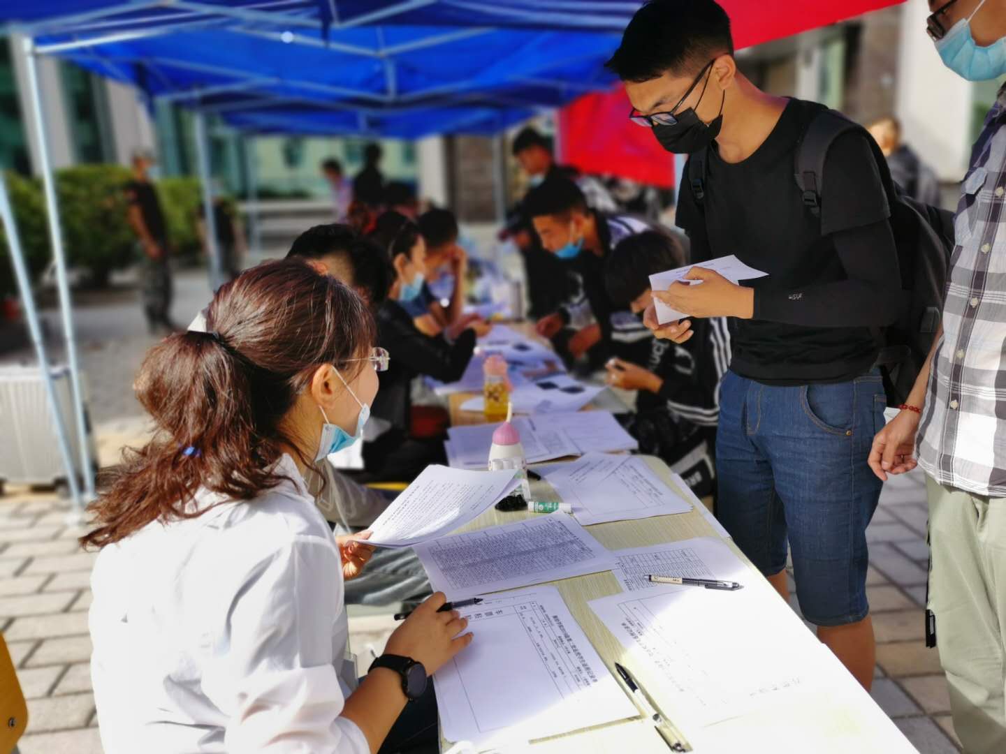 在学院教师妥善的安排下,有条不紊的进行办理学生报到的相关手续,对疫情期间复学严格把控,测量体温,消毒登记,对学生返校路程进行询问并且及时做好相关登记,之后对学生的公寓进行妥善的安排,使学生顺利入住。