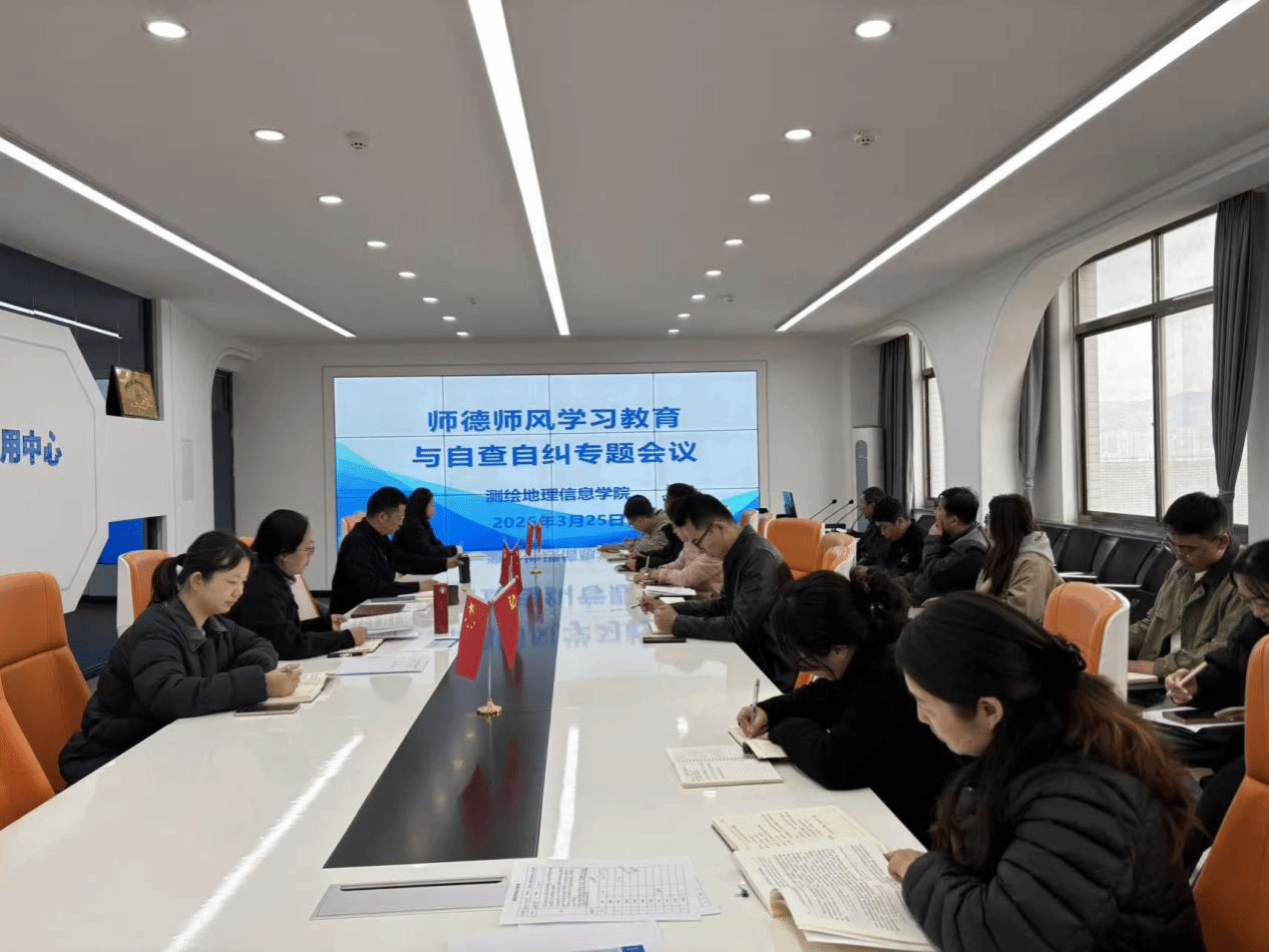 3 月 25 日,测绘地理信息学院召开师德师风学习教育与自查自纠专题会议,学院全体教职工参加会议。
