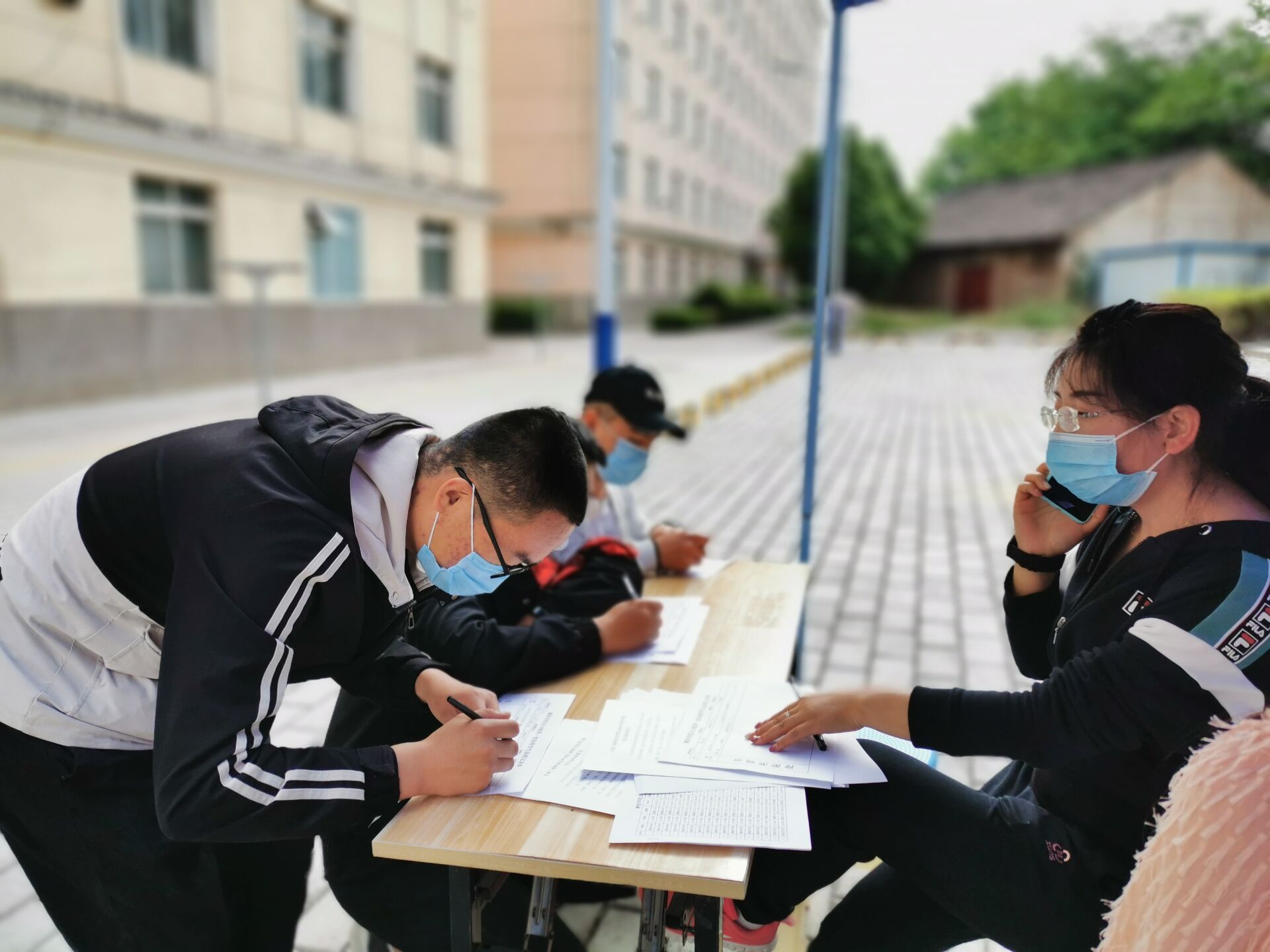 学院每一位教师冲锋在迎接学生返校的第一线,测量体温、消毒登记,把控好返校学生复学第一关,其他教师在各自岗位有条不紊的进行对学生返校路程信息的访问同时做好详细的记录,同时为学生入住公 寓手续进行办理,对个别公寓进行适当调整,将防控防疫工作细化到每一处。