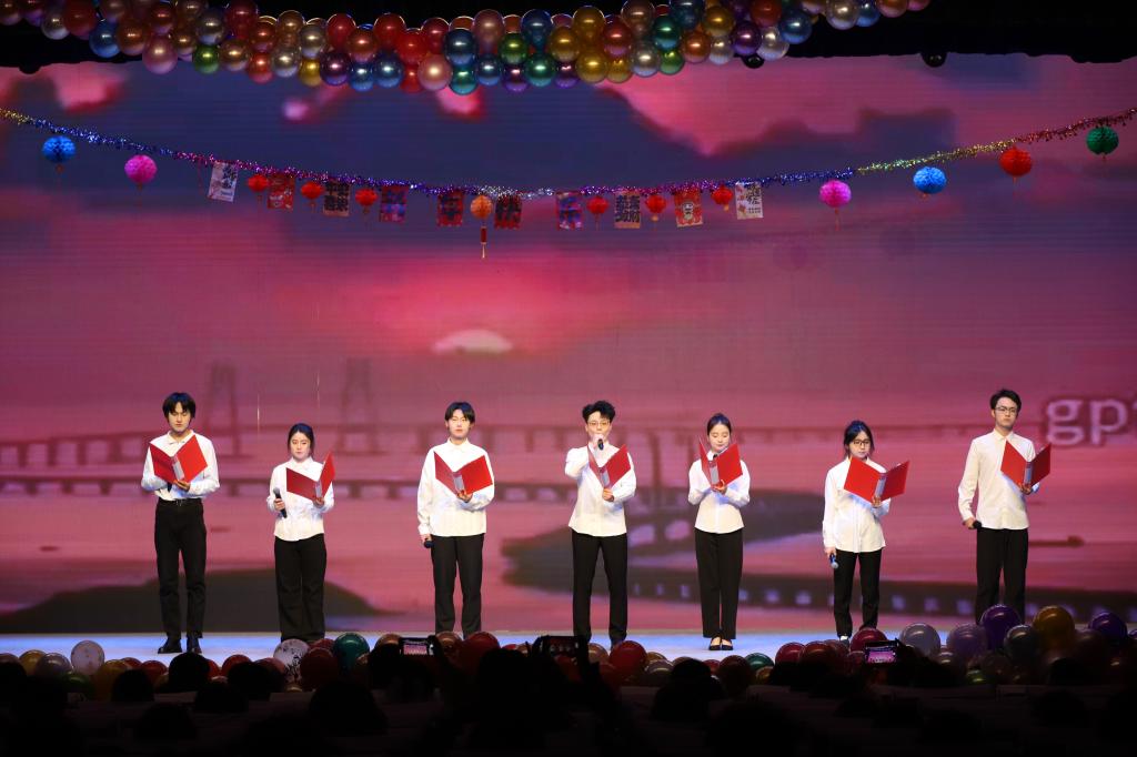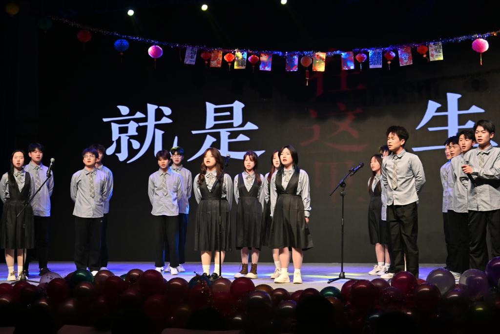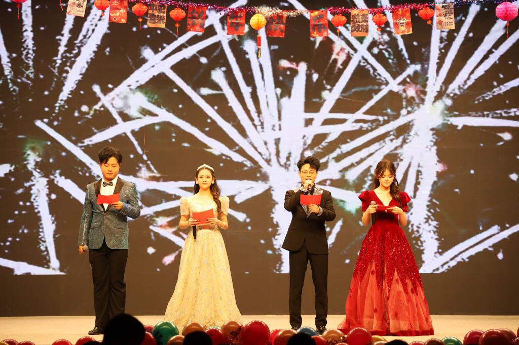 晚会节目形式丰富多元,朗诵《这盛世如你所愿》,以饱含深情的语调,抒发了新时代青年对祖国的赤诚热爱;合唱《至少还有你》,歌声温柔婉转,触动人心;舞蹈《Like Jenny》,舞步轻快灵动,展现出别样的青春魅力;小品《碰瓷》,用接地气的剧情和夸张的表演,引得全场掌声不断;全体师生在歌声与笑声中感受着学院大家庭的温暖。