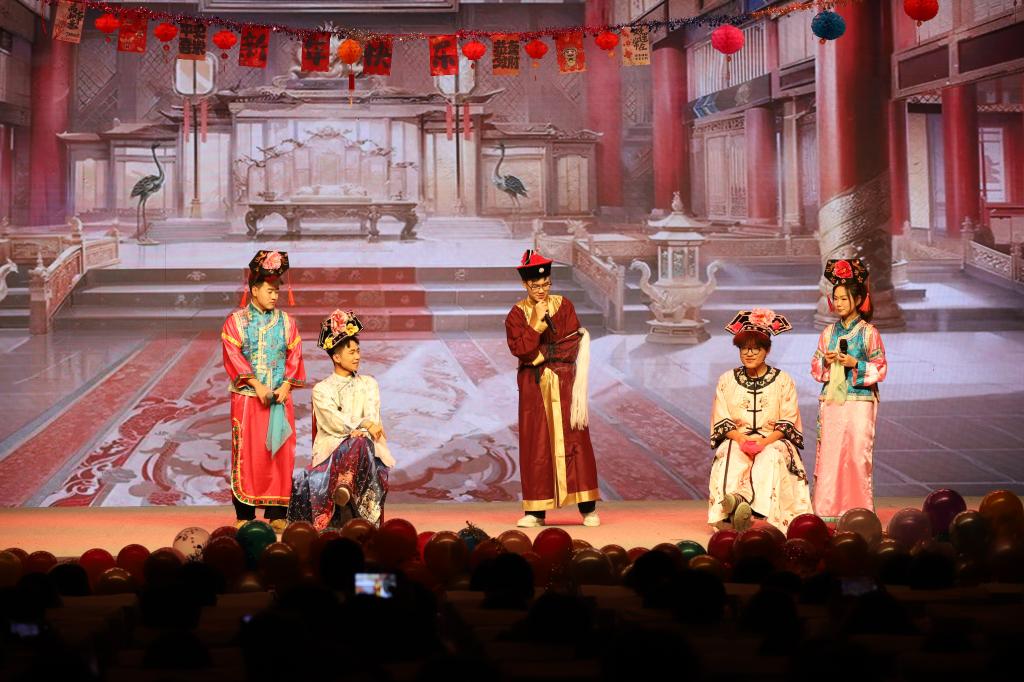 表彰环节落下帷幕,元旦晚会在舞蹈《盛世华风》的翩跹舞姿中正式拉开序幕,同学们的表演展现出青春的蓬勃朝气。小品《甄嬛后传》,用诙谐幽默的台词与生动传神的表演,引得台下笑声连连。