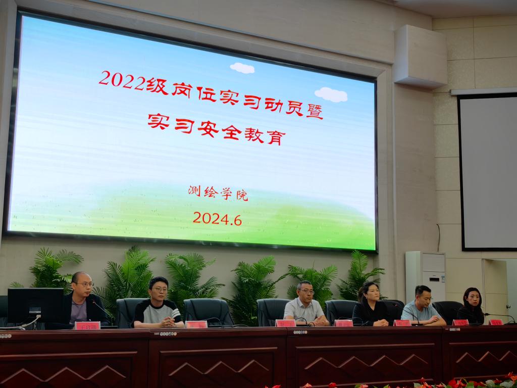 为推进实习工作的顺利开展,引导学生做好实习前的各项准备工作,强化责任意识和安全意识,6月7日,测绘学院召开了2022级学生实习动员暨安全教育大会。测绘学院院长薛亚宏,副院长唐均,学院党总支副书记高霞以及学院辅导员出席本次大会,22级全体学生共同参与。